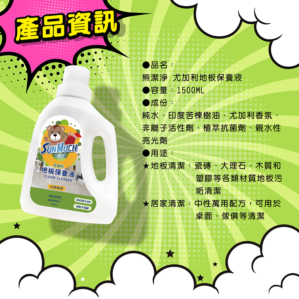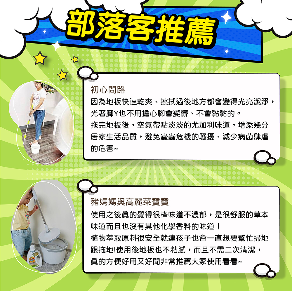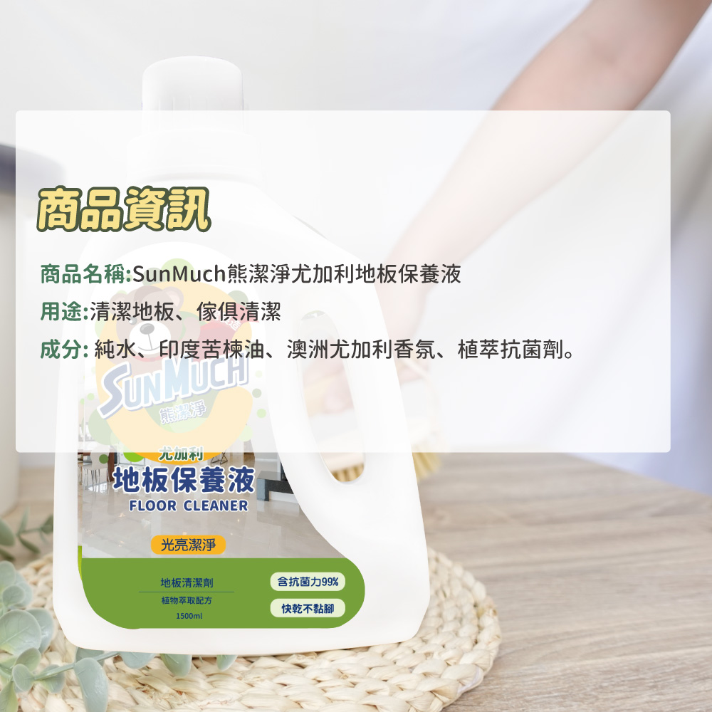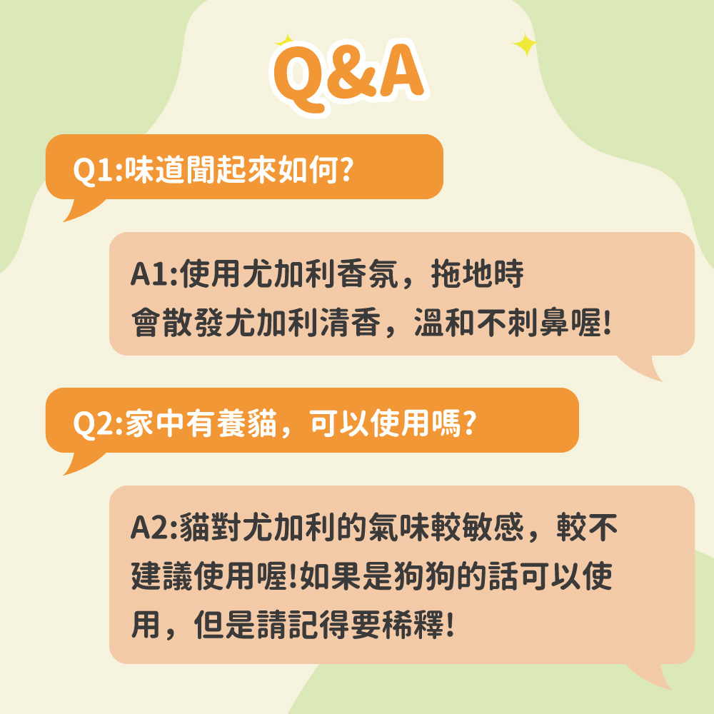 使用尤加利香氛,拖地時會散發尤加利清香,溫和不刺鼻喔!
