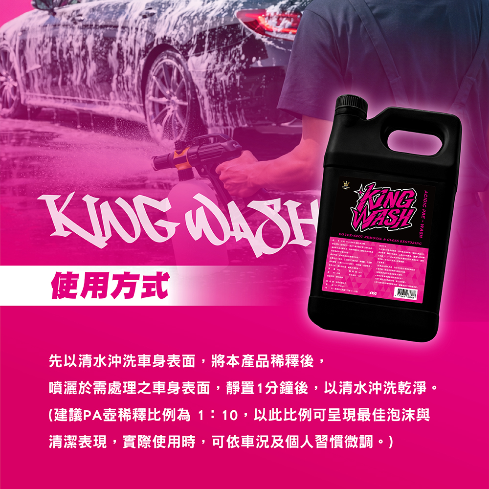 1.本產品為預洗用途,勿取代中性洗車精單獨使用。