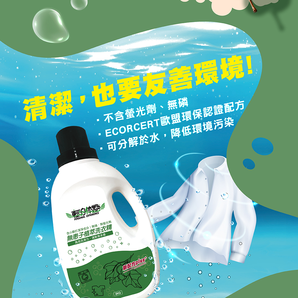 含無患子萃取液,潔淨配方、不含螢光劑、無磷配方自然分解