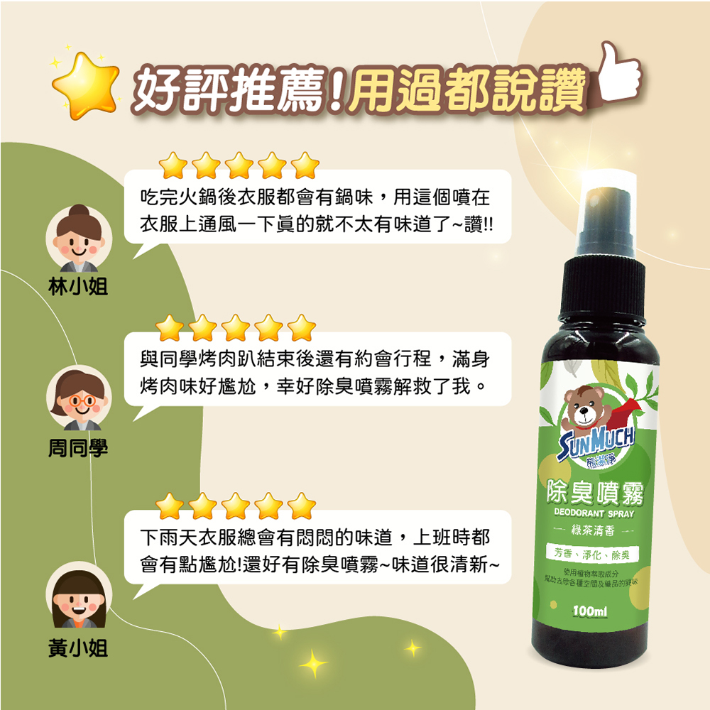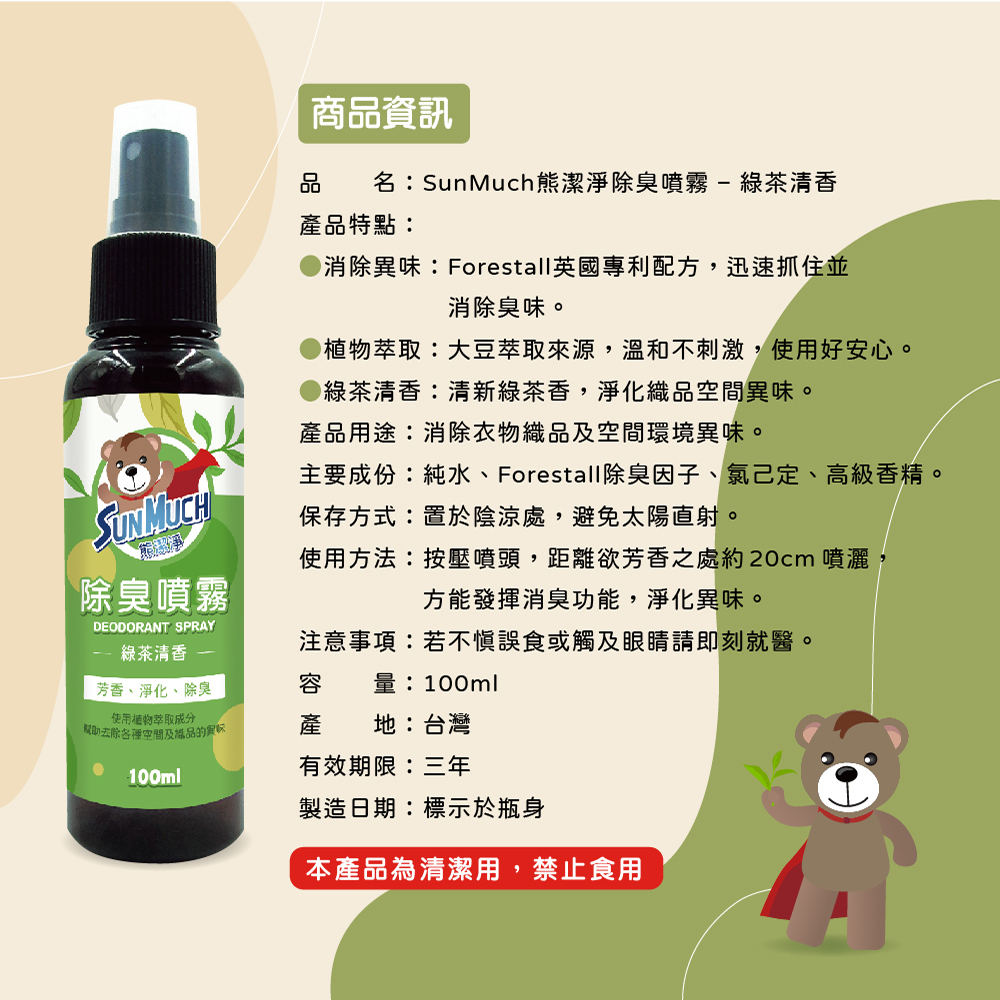 品名:SUNMUCH熊潔淨除臭噴霧_綠茶清香