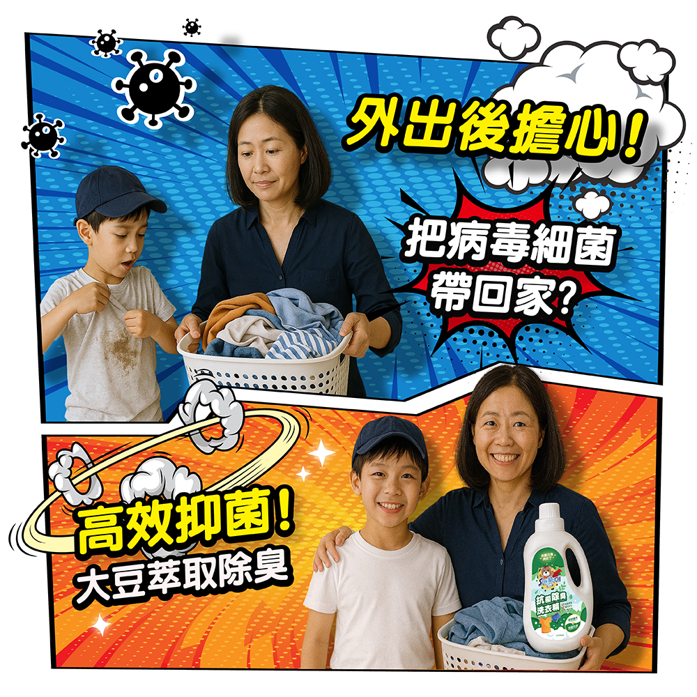 別擔心,熊潔淨抗菌除臭洗衣精來救你了!💦