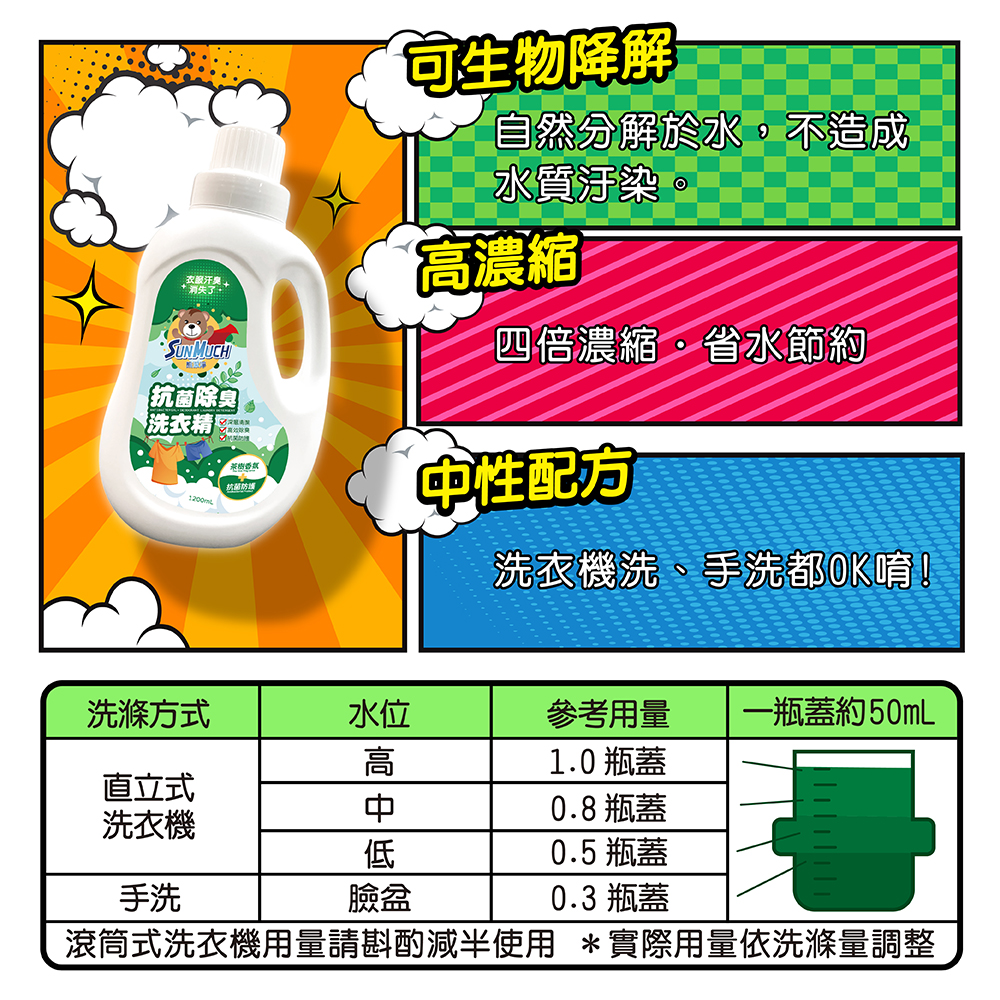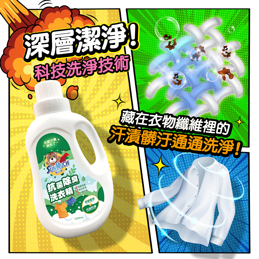 所以,來試試 SunMuch熊潔淨抗菌除臭洗衣精吧!✨