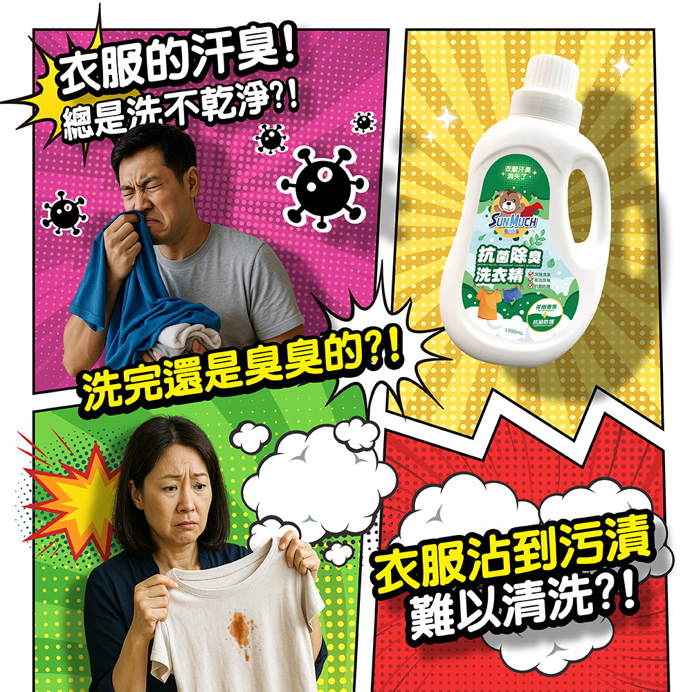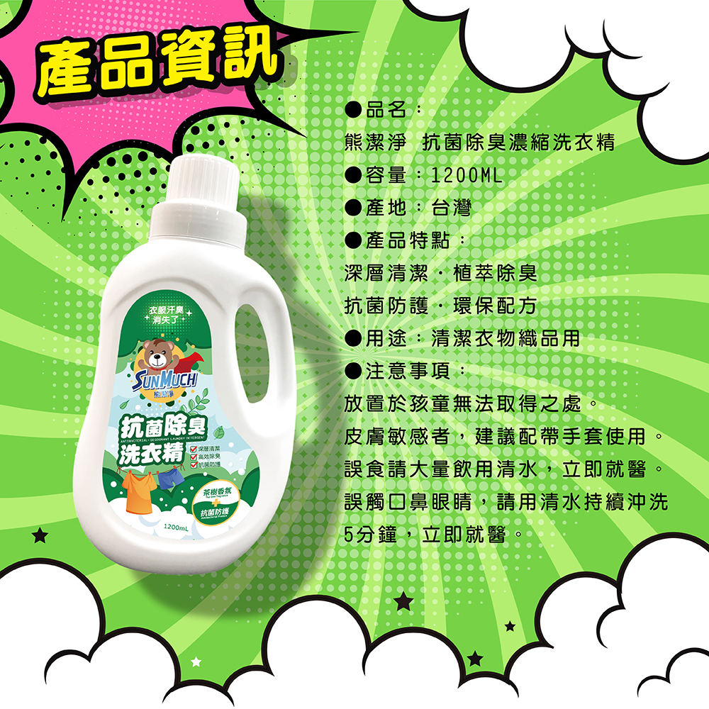 使用 SunMuch熊潔淨,讓你的衣服不再是細菌的聚會場所,而是每天都能給你清新感的好夥伴!一起告別汗臭,迎接每一個清新的日子吧!🌟
