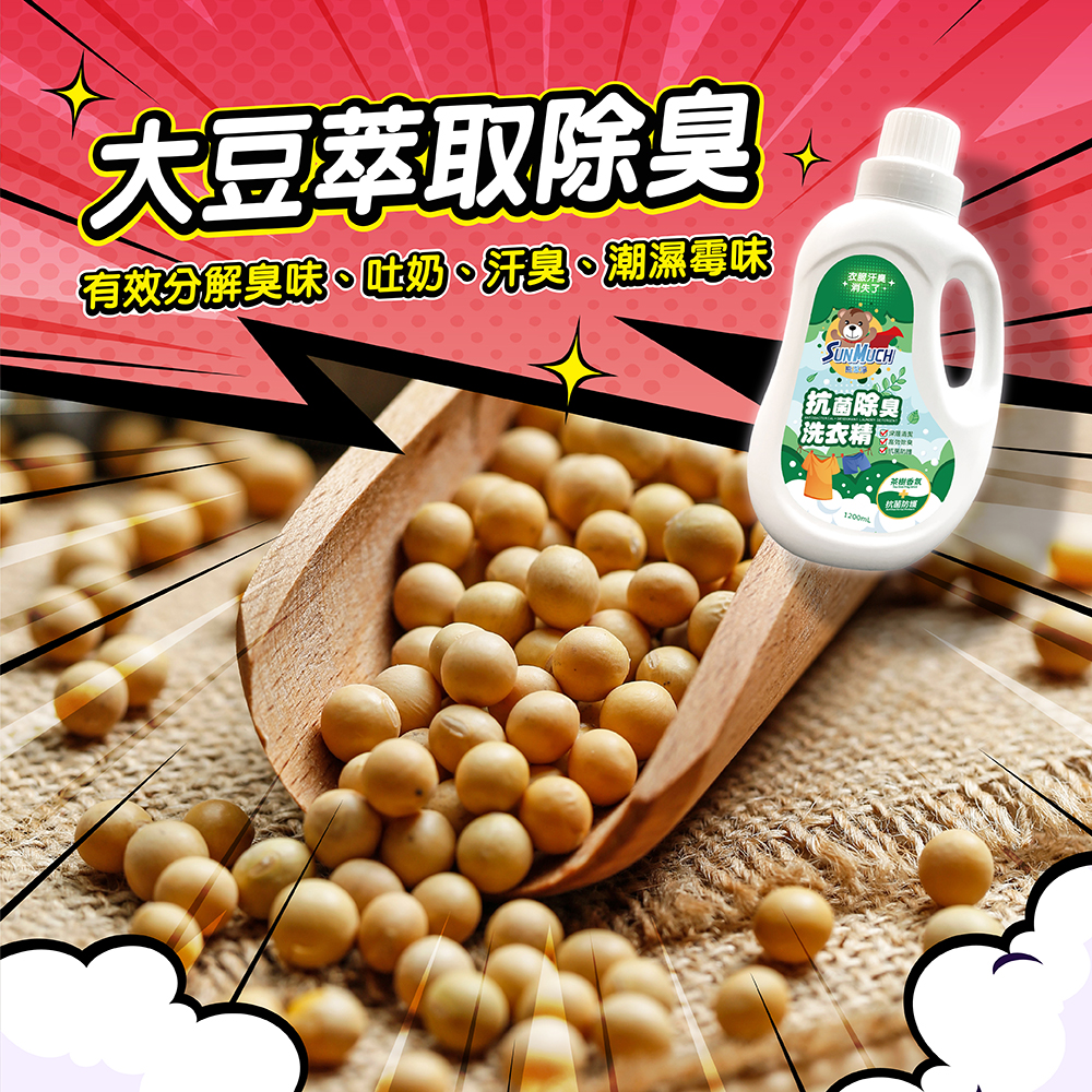大豆酵素:分解殘留在衣服上的汗漬、汗臭、奶臭味。