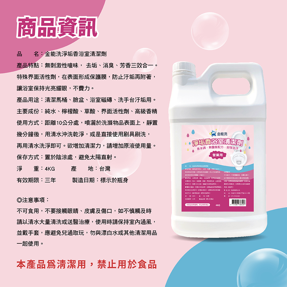 產品用途:清潔馬桶、臉盆、浴室磁磚、洗手台污垢用。