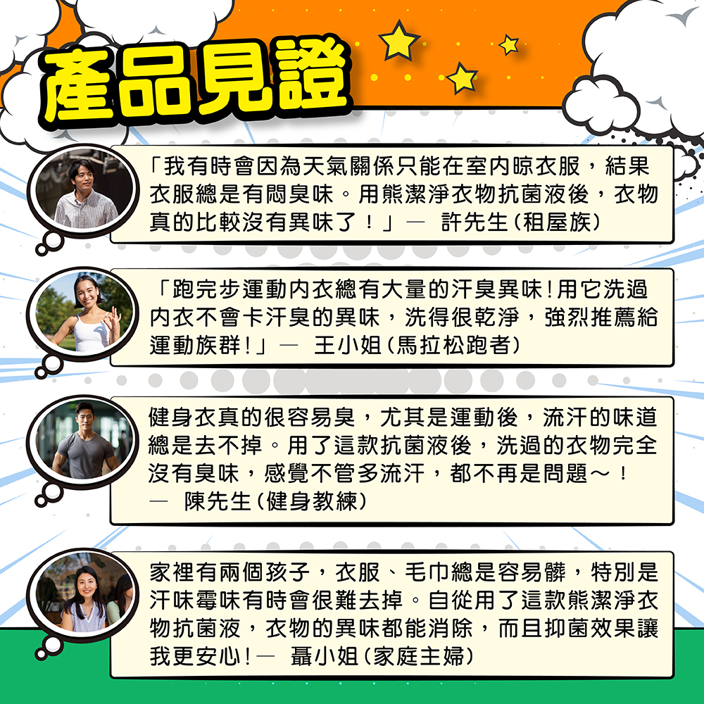 去除布織品上殘留的細菌、異味,有效殺菌「金黃色葡萄球菌」、「綠膿桿菌」、「大腸桿菌」