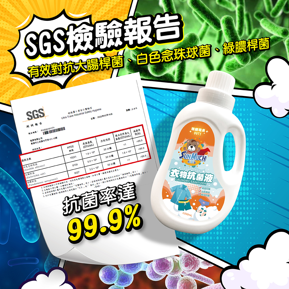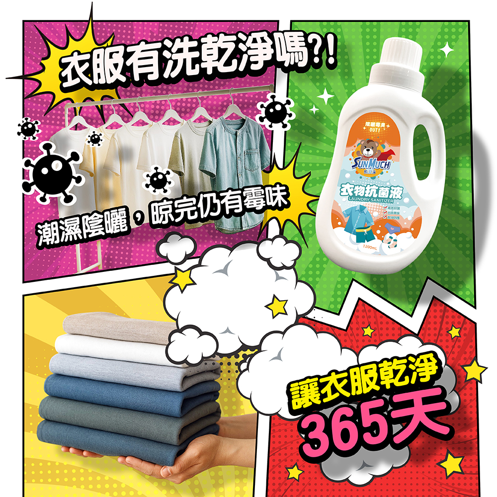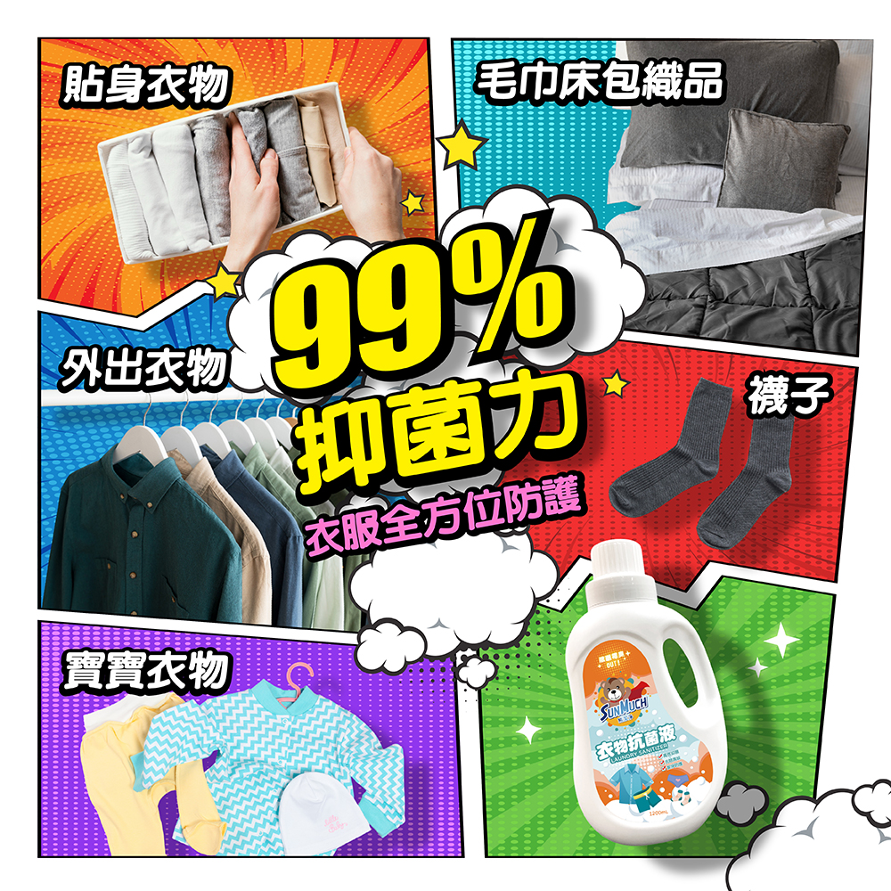 有效預防衣服細菌殘留滋生,並去除大腸桿菌、流感病菌,給您安全防護力!