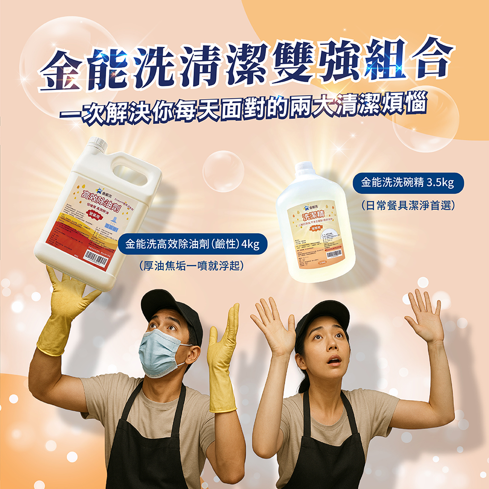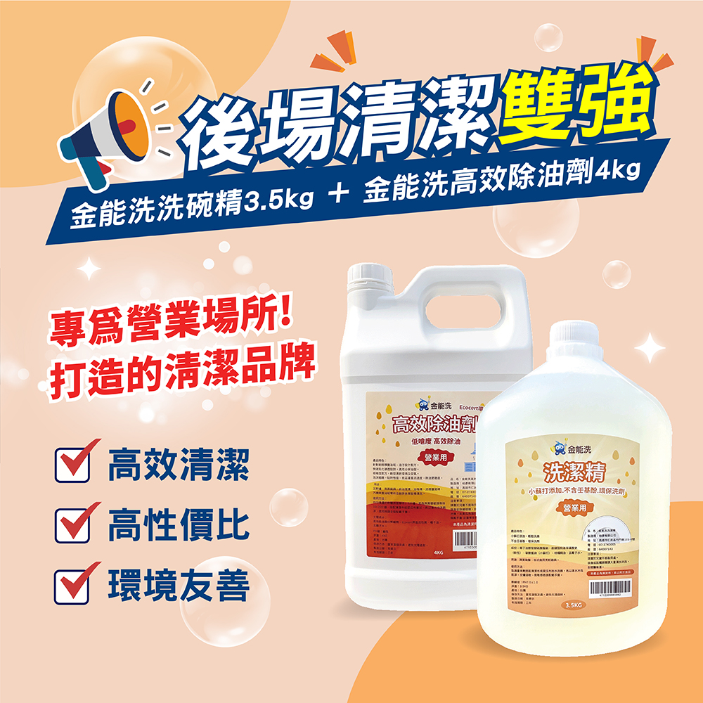 【組合品名】:金能洗洗碗精3.5kg + 金能洗高效除油劑(鹼性)4kg